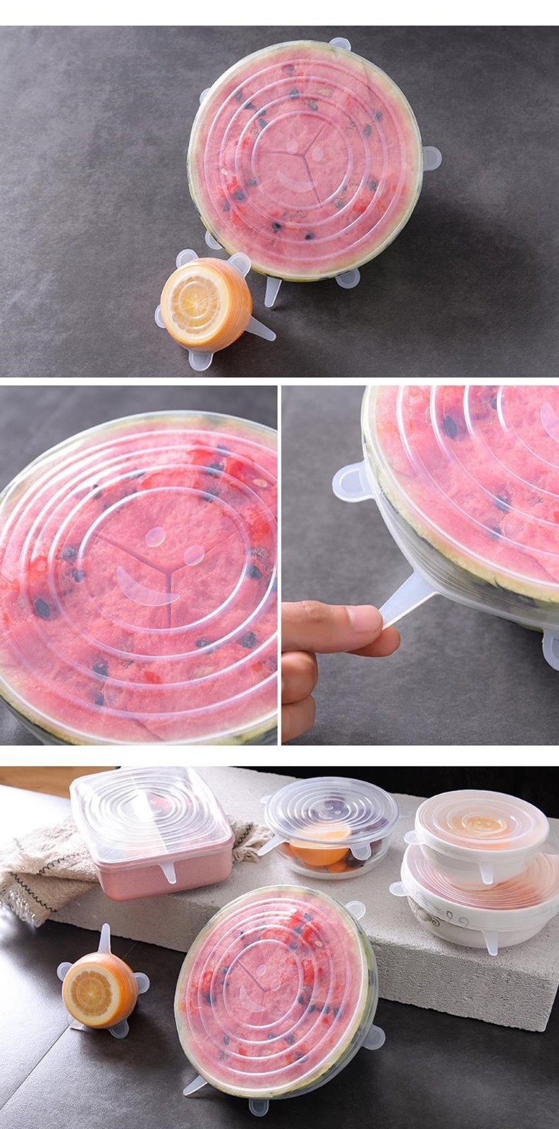 As Tampas Universal de Silicone são práticas e higiênicas, conserva seus alimentos por muito mais tempo, são 6 tamanhos diferentes e graças ao seu poder de 30% a mais de expansão, se ajusta a qualquer tipo de pote, travessa, panela, lata, fruta etc., seja o recipiente redondo ou quadrado o ajuste e a vedação são perfeitos. Vão do freezer ao micro-ondas e servem para abrir vidros fechados a vácuo. São reutilizáveis e podem ser lavadas em água quente ou lava-louças. Duram anos! (Kit com 6 peças)